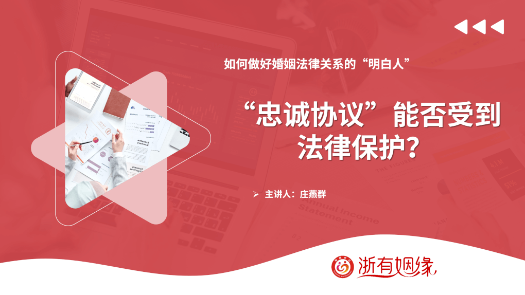恋爱或婚姻中的双方,为维护感情稳定,有时会签订"忠诚协议",约定若一方有不忠行为,需承担相应的经济责任或在财产分割上做出让步。那么,当关系破裂,一方真的违反了协议,这样的约定能够得到法律的保护和执行吗?下面让我们跟着浙江泽大律师事务所高级合伙人庄燕群律师一起来了解一下相关的法律知识。